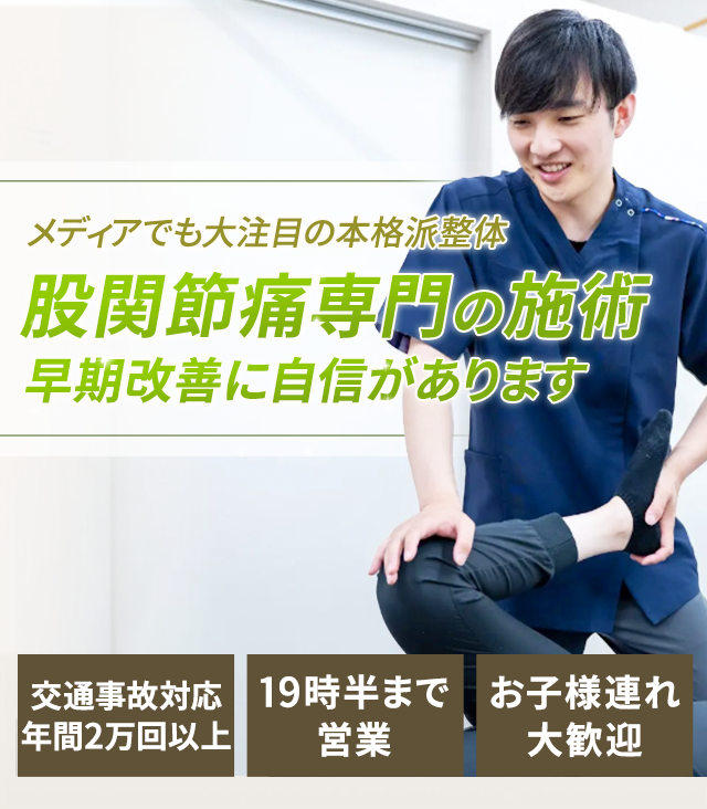 豊富な実績を持つ私たち専門家が、あなたのつらい股関節痛を改善に導きます。