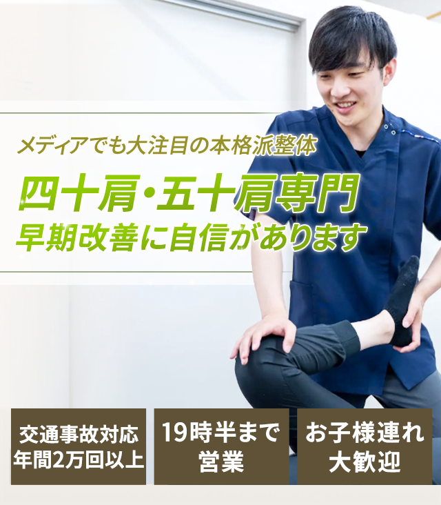 豊富な実績を持つ私たち専門家が、あなたのつらい四十肩・五十肩を改善に導きます。
